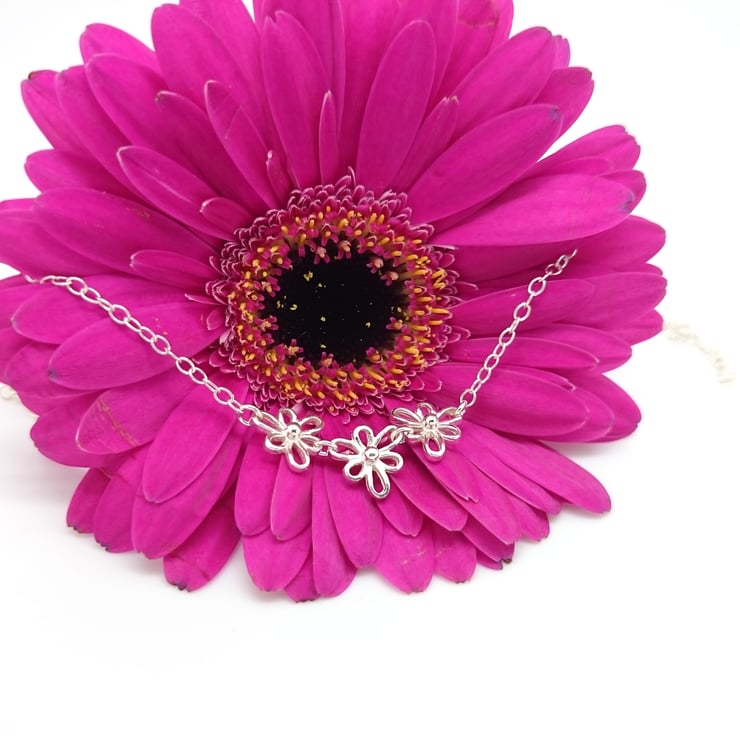This delightful floral necklace is 18 inches in length which will fit most wrists. Each Iris measures approximately 1cm across and the chain links are approximately 2mm wide.
