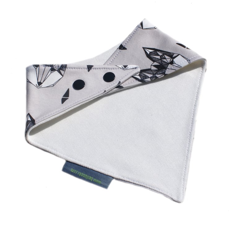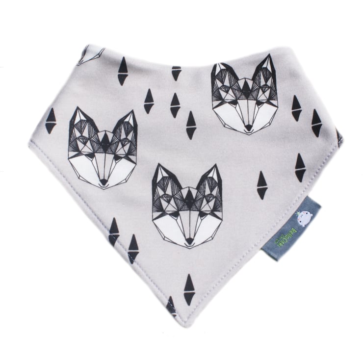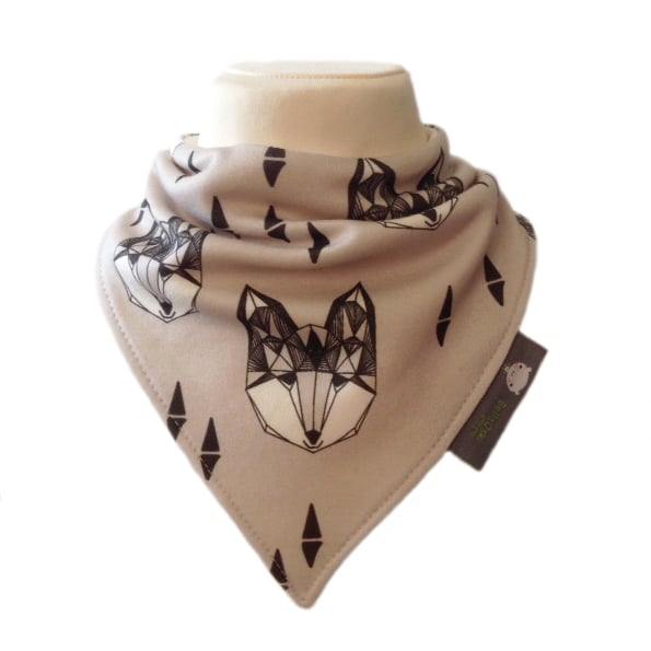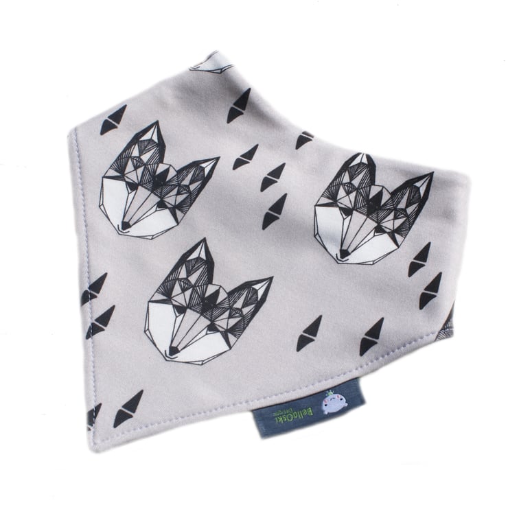 Eco Friendly, Luxury Baby Bandana Dribble Bib in GEOMETRIC FOX HEADS Organic Knit fabric to give that perfect Modern Edge to your babies outfit. Lined in Ultra soft & absorbent Organic Bamboo & Cotton fleece fabric, keeping moisture away from their chests whilst keeping their clothes dribble free & looking Ultra Cute. (Available in other designs - last pic)
