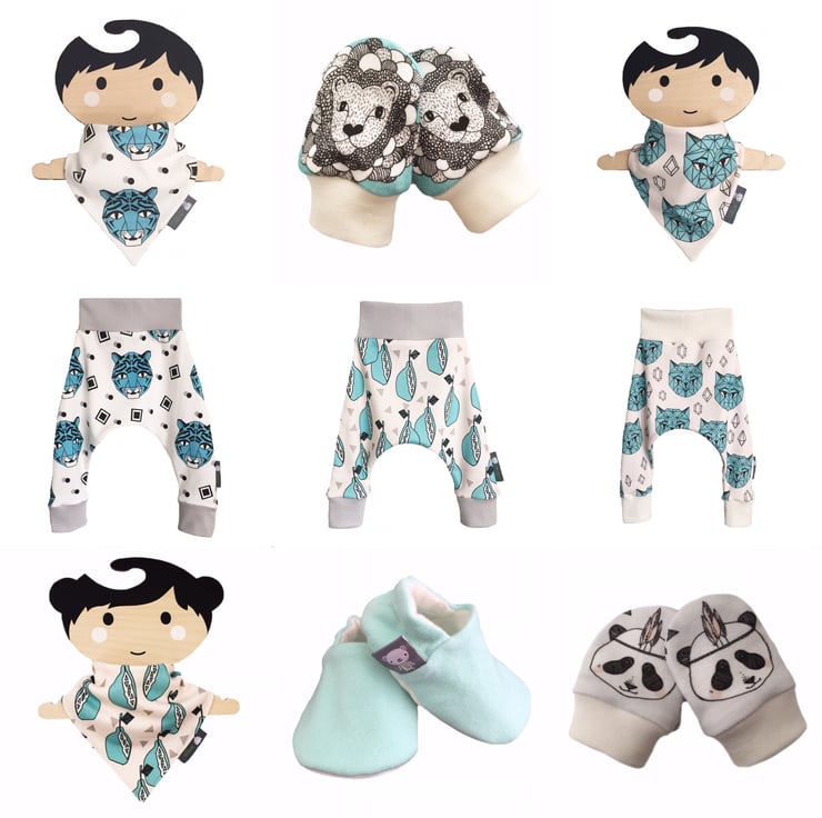 Complete an outfit with our matching/co-ordinating items including Knotted Headbands, Hats, Scarves, Scratch Mittens, Cuff Shorts, Harem Pants, Relaxed Cuff Pants, Leggings & Pram Shoes