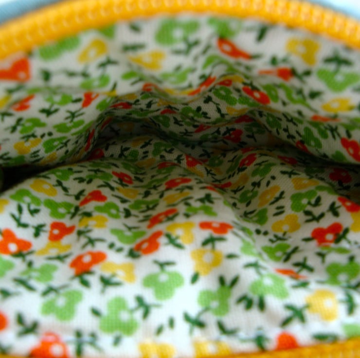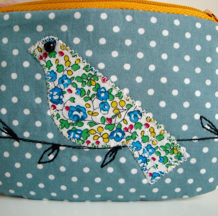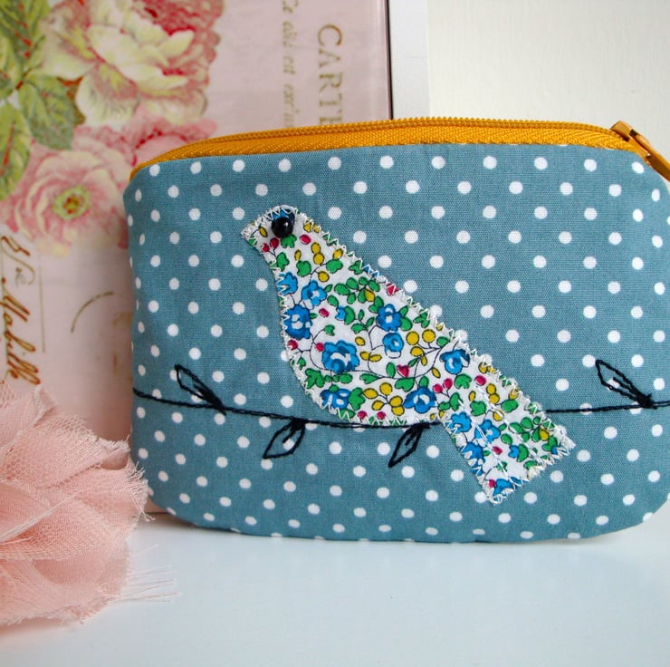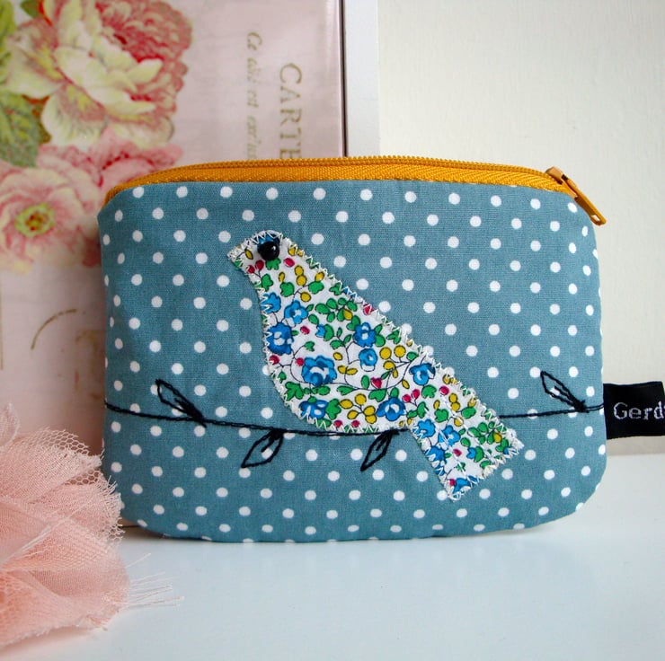 A very pretty handmade zipper coin purse , ideal for storing a selection of your loose change - cards , can also be used as a mini make up bag .