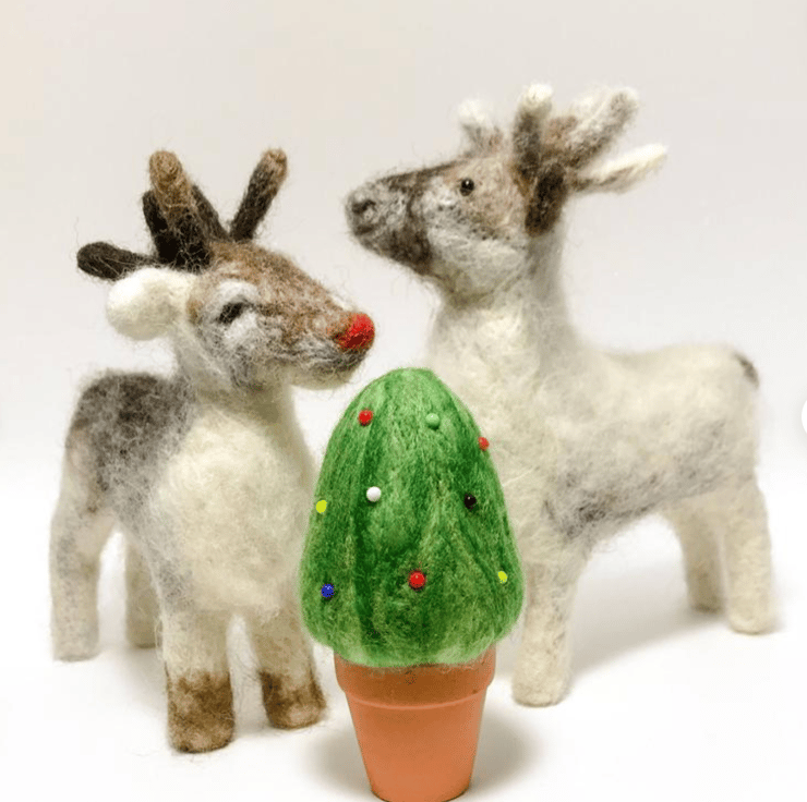 2 in 1 Early Bird Christmas Needle Felting Kit - Robins and Reindeer