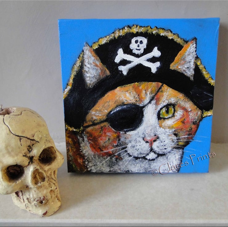 Original acrylic painting on canvas of my cats sworn enemy in his pirate hat!