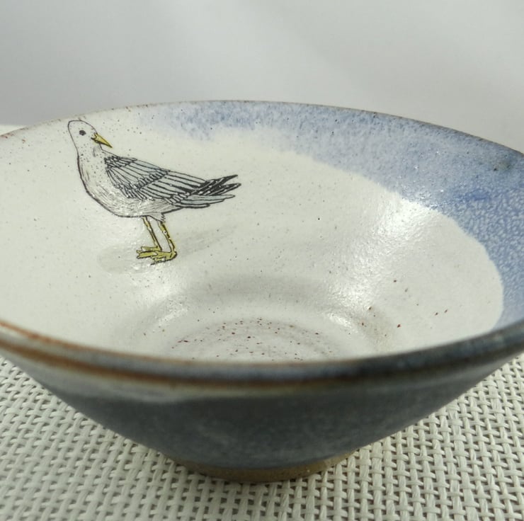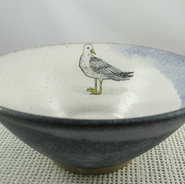 The yellow legged gull image was produced by my friend Zanna - visit her at zannaallenillustration.co.uk. Fired onto the bowl at over 800 degrees centigrade, the image will not fade or mark in any way.
