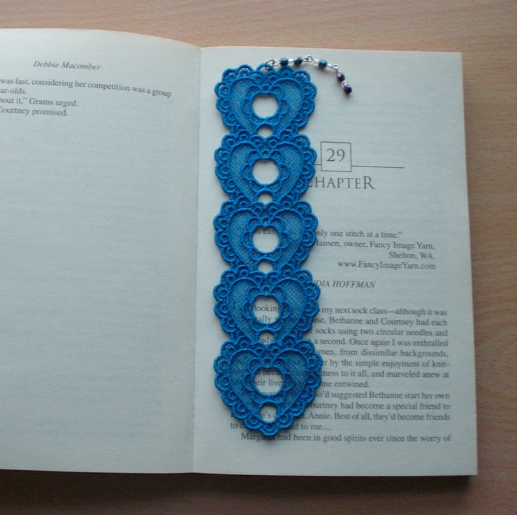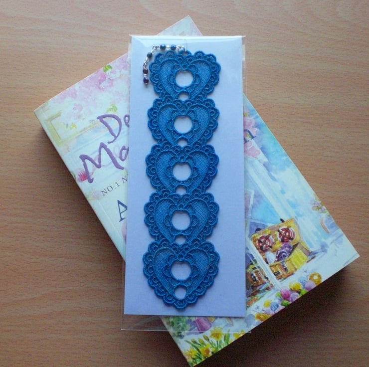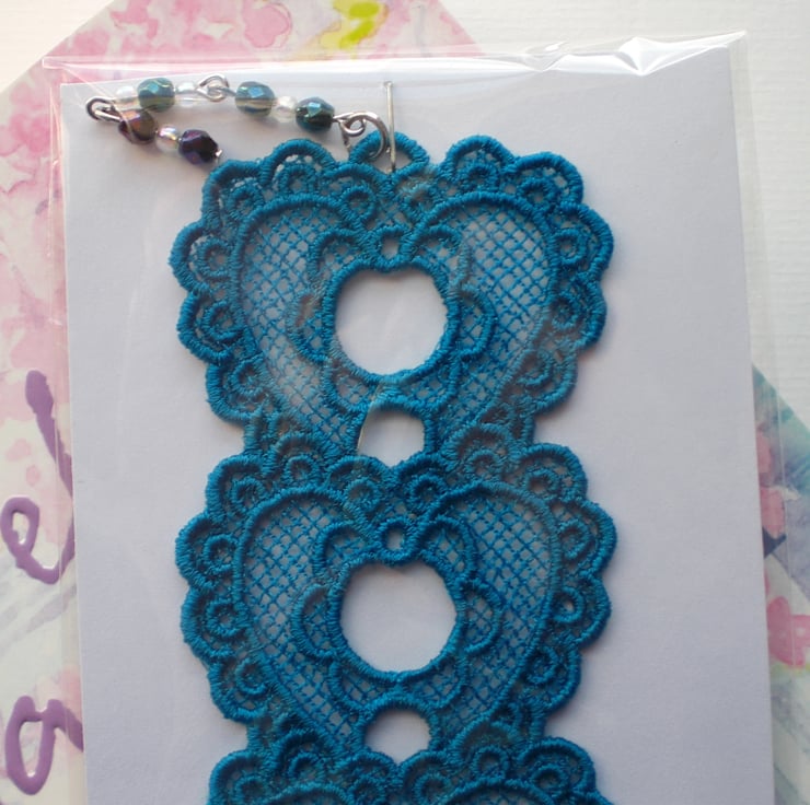 Lovely embroidered Heart bookmark with bead charm