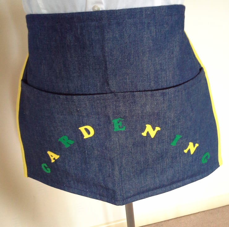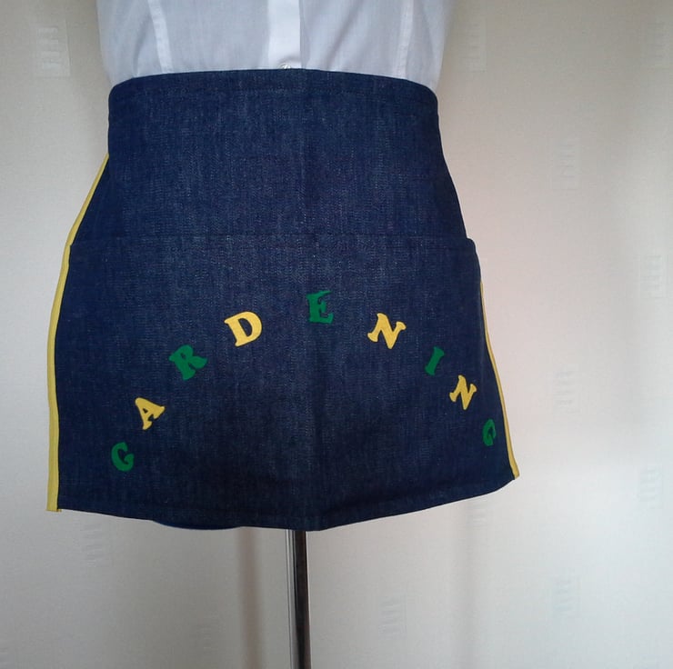 A robust denim apron with a large deep pocket large enough to carry some hand tools, seed packets and twine etc.