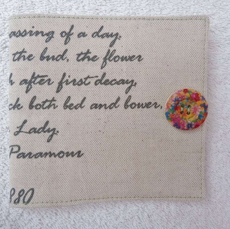 I have created this lovely sewing needle case from an upholstery weight print cotton. The needle case is lined in plain cotton fabric, has interfacing for structure and has a matching flower print fabric to keep your needles safe. The case has a printed wooden button and elastic to close, and is top stitched for a professional finish. The needles shown in the picture are included.