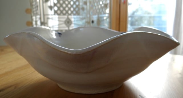 Made of stoneware clay this bowl is very strong. It is also food-safe and dishwasher proof.