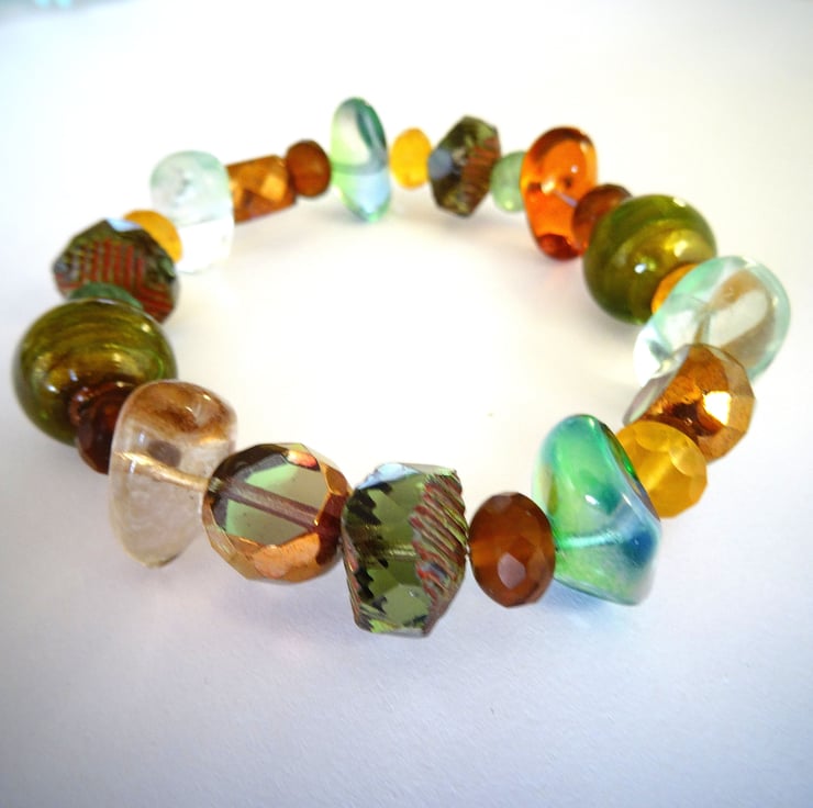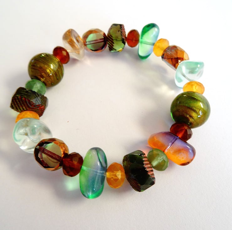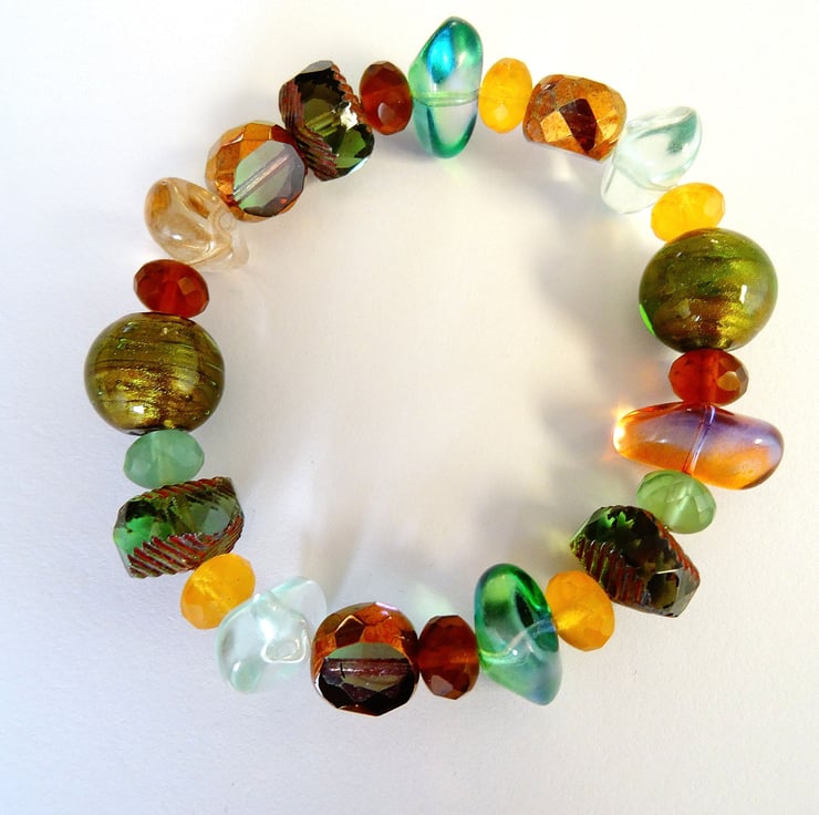 This is a lovely bracelet made with a variety of czech glass beads in autumnal colours. The bracelet is stretchy threaded on strong jewellery elastic so will fit any size wrist. As all of the items in my shop are individual pieces made by myself, this is the bracelet you will receive. It will arrive gift wrapped in tissue paper and a organza bag.