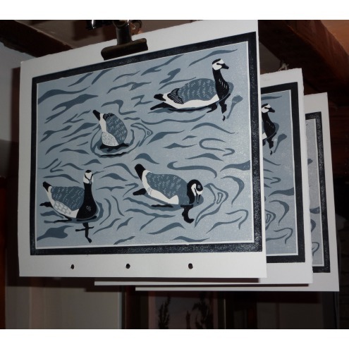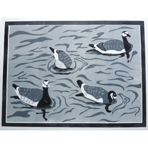 An original lino cut print (limited edition of 7). Printed in two shades of grey and black from a hand-cut reduction lino "plate" with an oil-based but water washable ink onto heavyweight Canson Gravure paper. Print size approximately 22.5x30cm and supplied UNFRAMED. These items are hand-printed and so vary slightly depending on ink density, character of the paper, pressure of the press and the way the wind blows (ok, maybe not the last bit).