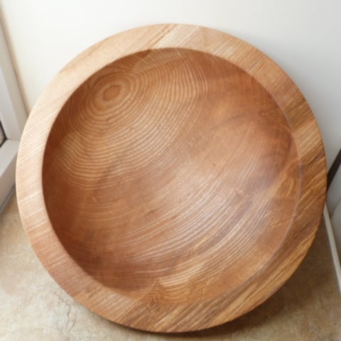 JUST AN HONEST CHUNKY STRAIGHT FORWARD ASH SALAD BOWL, HAS GOOD FIGURE, 12'' WIDE, FOOD SAFE FINISH.