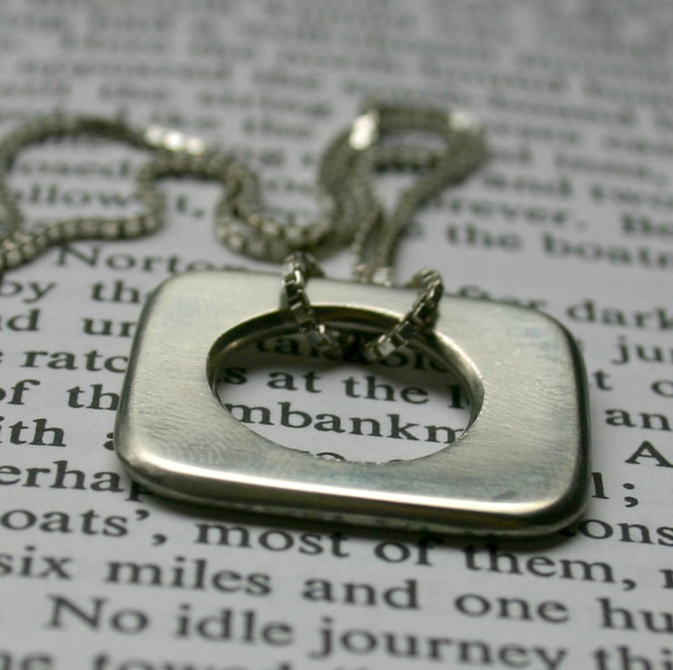 This pendant is made from solid silver and is approximately 24mm square and 2mm thick.