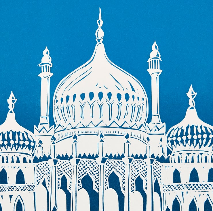 'Brighton Pavilion' greetings card is taken from an original vinyl-cut relief print by Sophie Mutter.