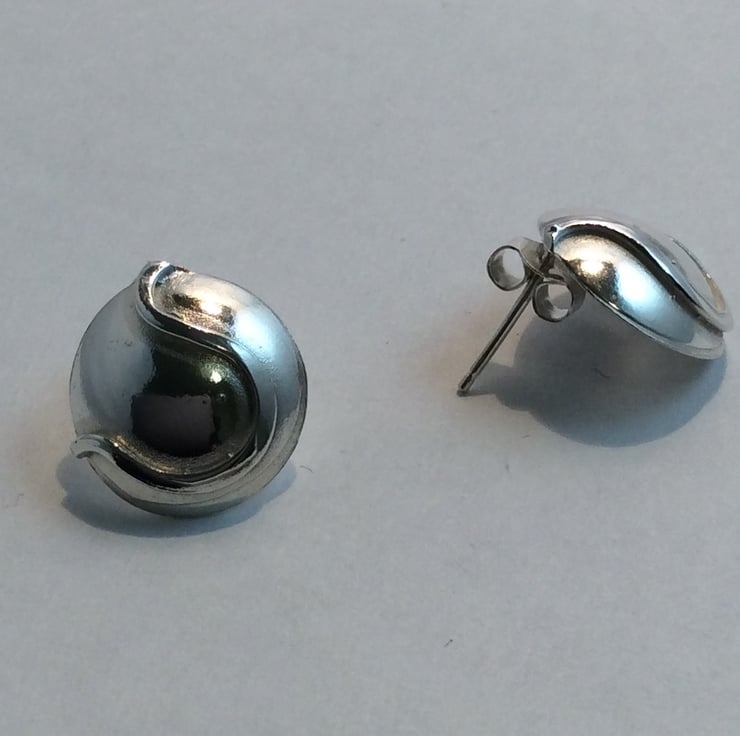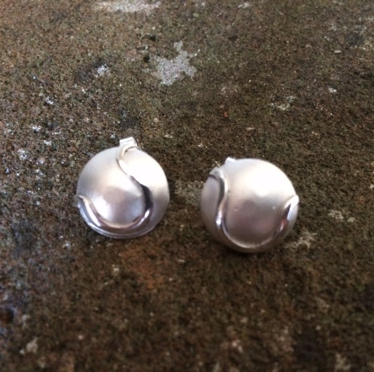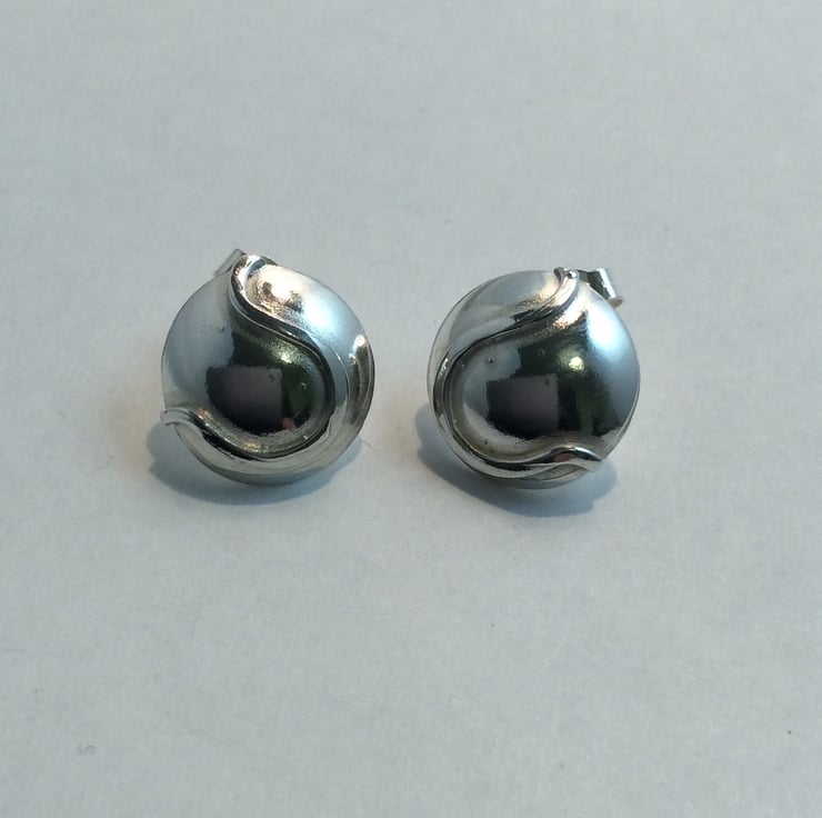 A small silver dome fused with a bright relief wire, finished with stud and butterfly posts.