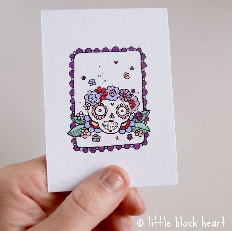 original artwork in ink and coloured art pens, on textured white 300gsm cardstock.