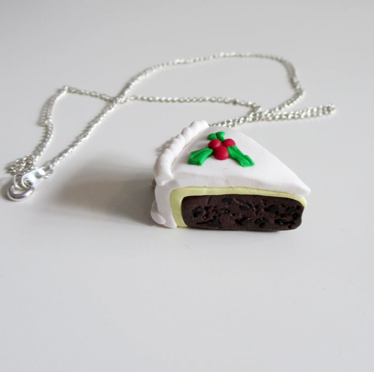 Retro Christmas cake slice necklace OR keyring, fun, unique, handmade novel