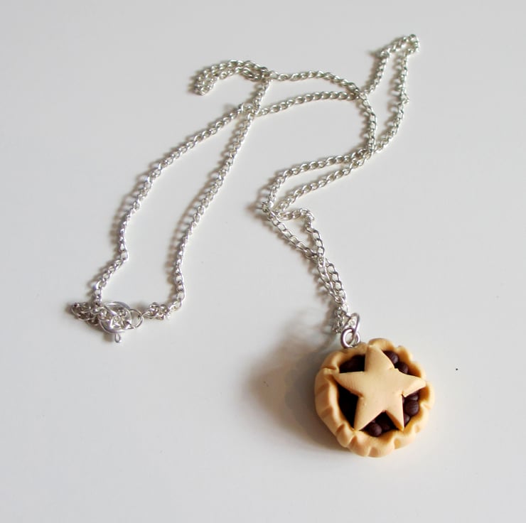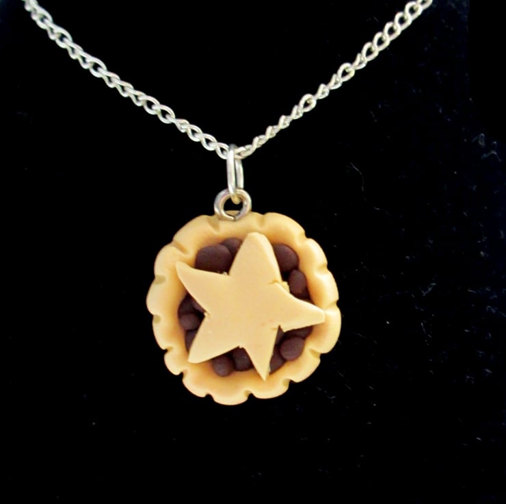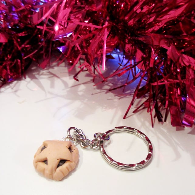 Retro Christmas Mince pie necklace OR keyring, fun, unique, handmade novel