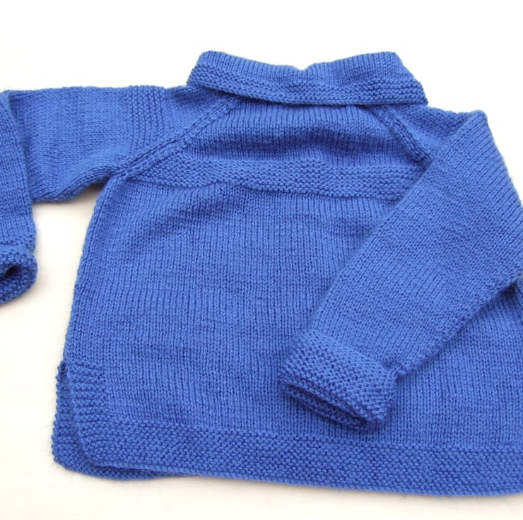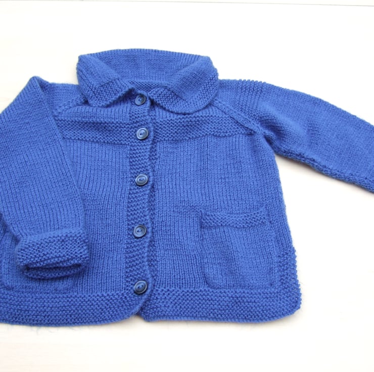 Hand knitted boys girls blue cardigan with pockets 2 - 3 years