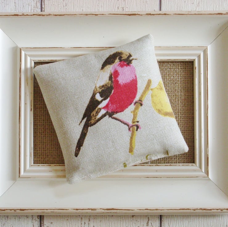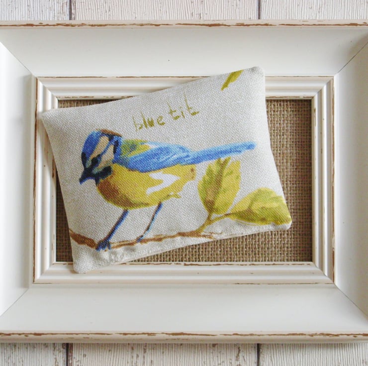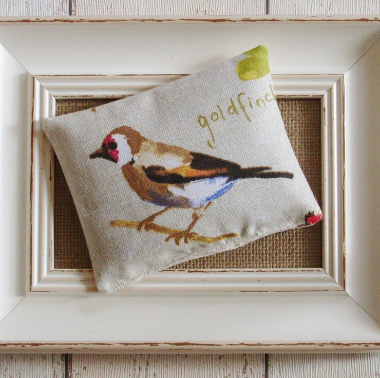 Two pretty lavender bags featuring a variety of English garden birds, including Goldfinch, Bullfinch, Chaffinch, Blue Tit and Robin. Sizes and shapes vary but approximately 12cm x 10cm. A random selection of two different birds will be sent.