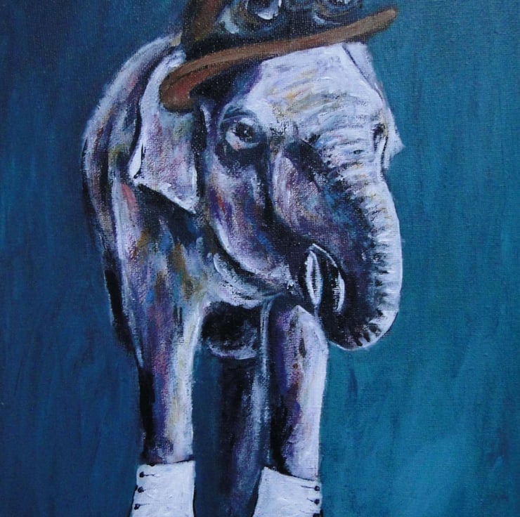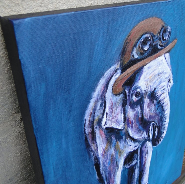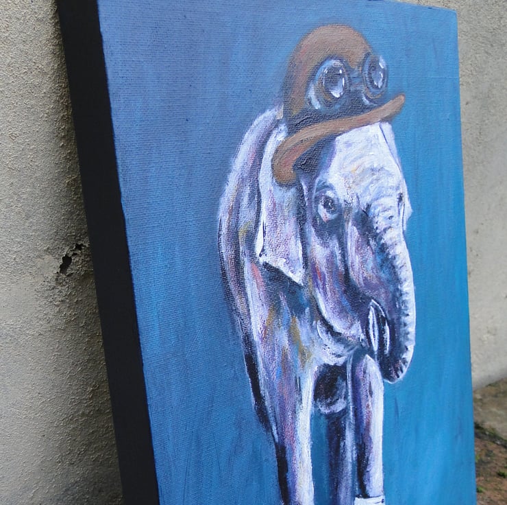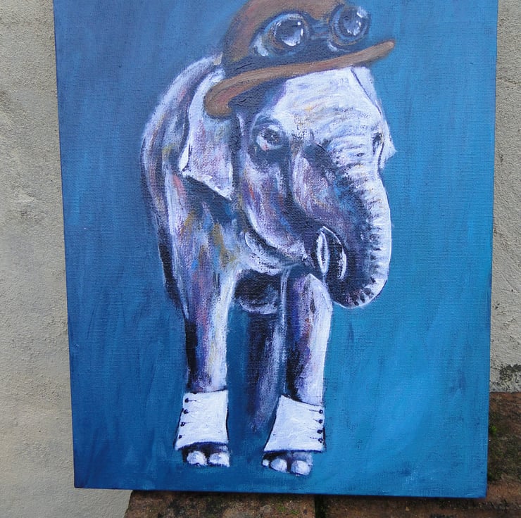 Original acrylic painting on canvas of a very dapper steampunk elephant in all his finest!