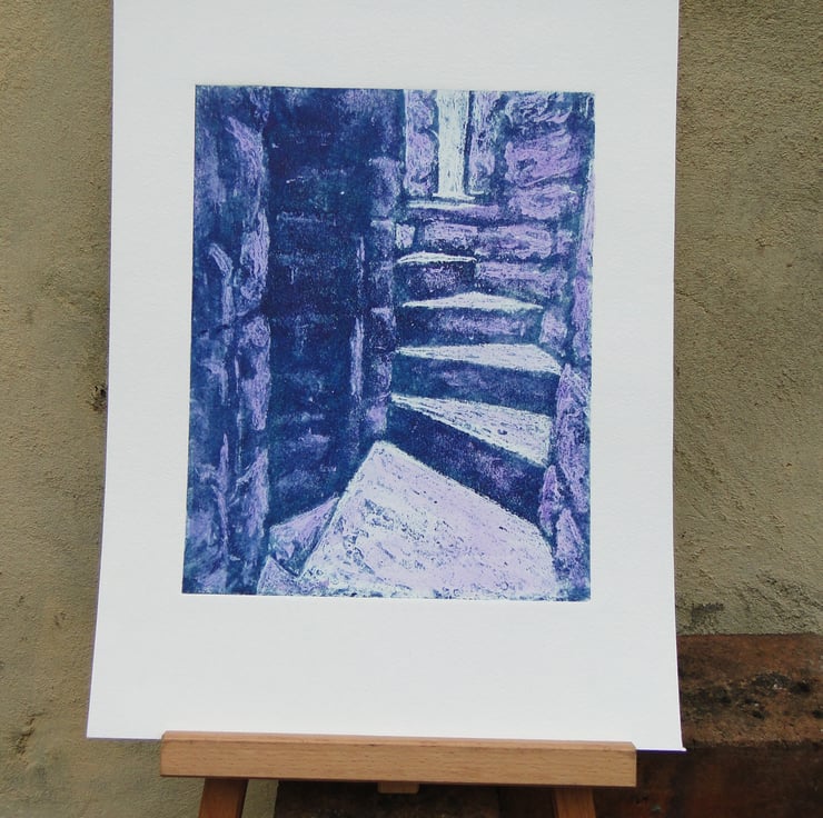 Hand printed on 300gm acid free watercolour paper in prussian blue oil based ink with watercolour washes.
