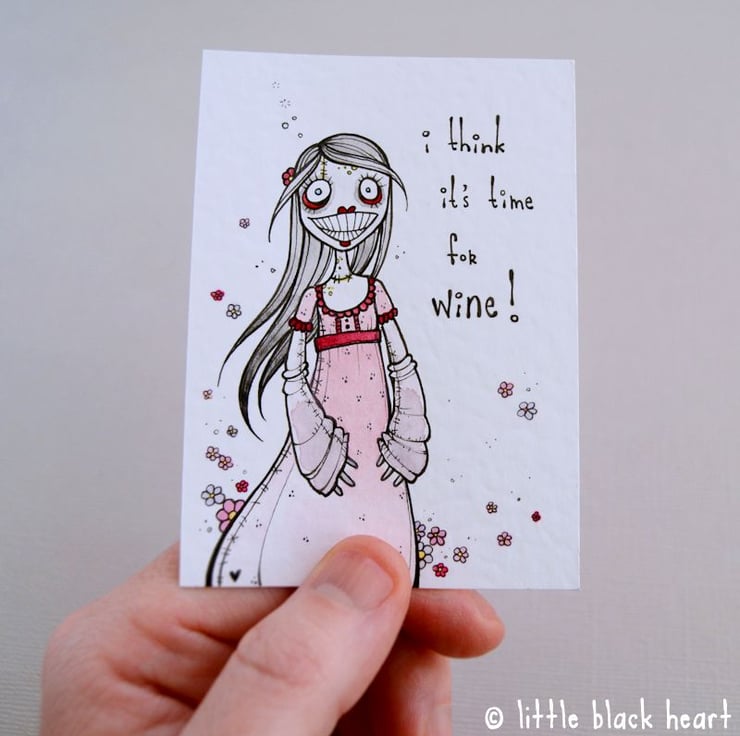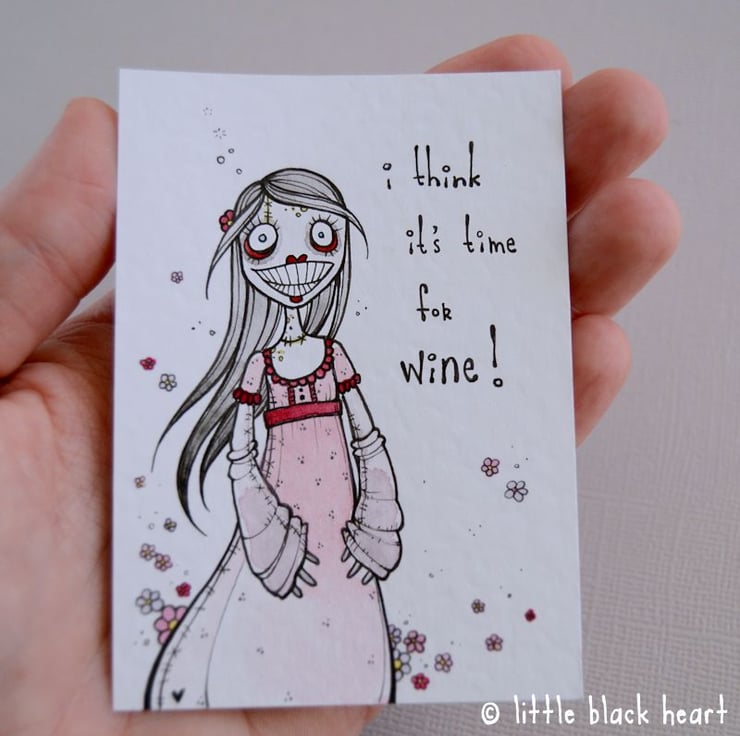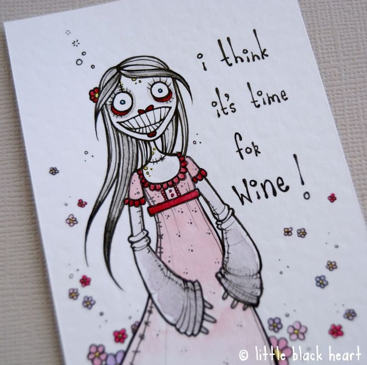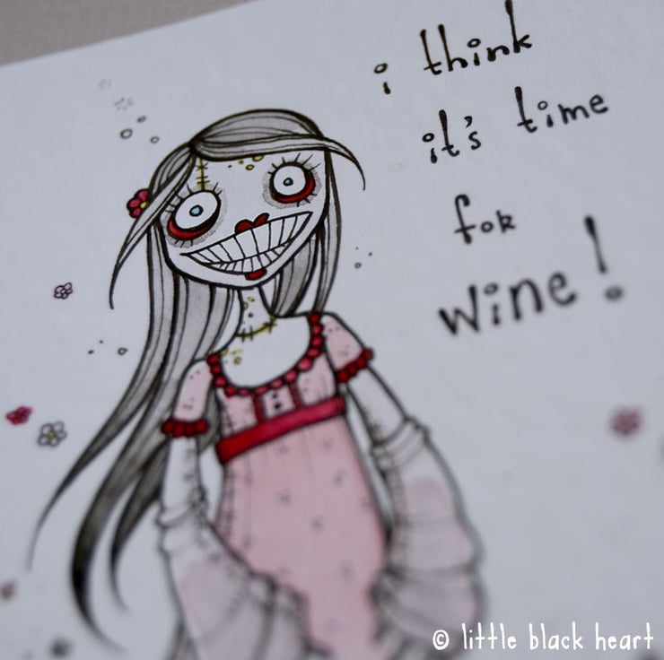 this little zombie is looking a little frazzled. maybe wine would be a good idea?