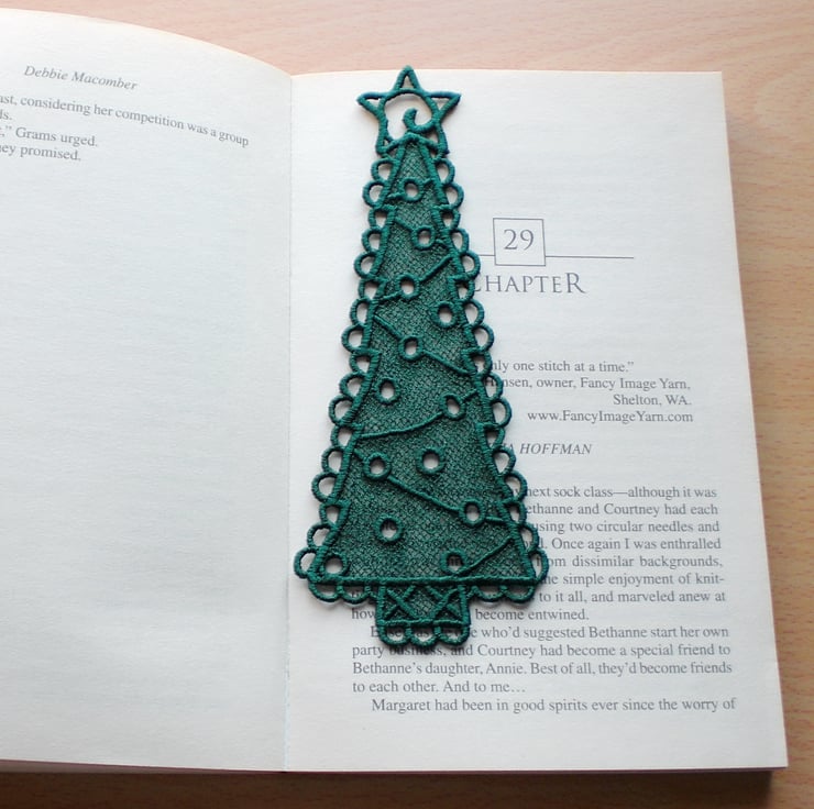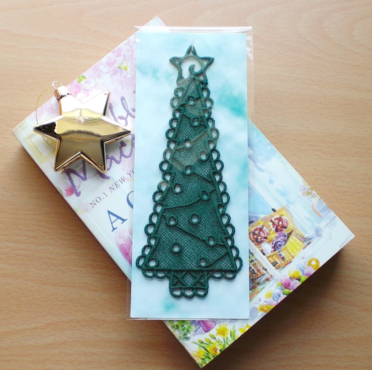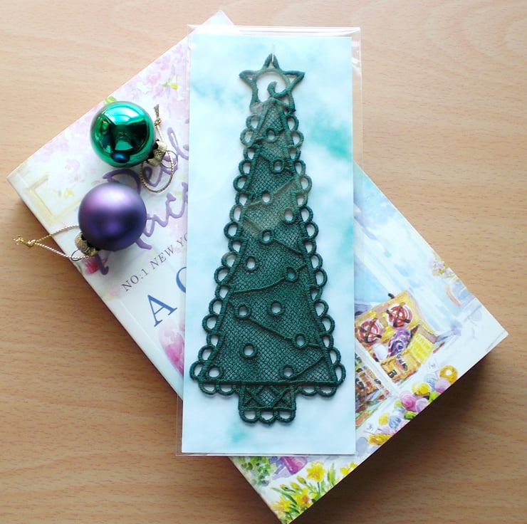 Lovely embroidered lace Christmas tree bookmark.