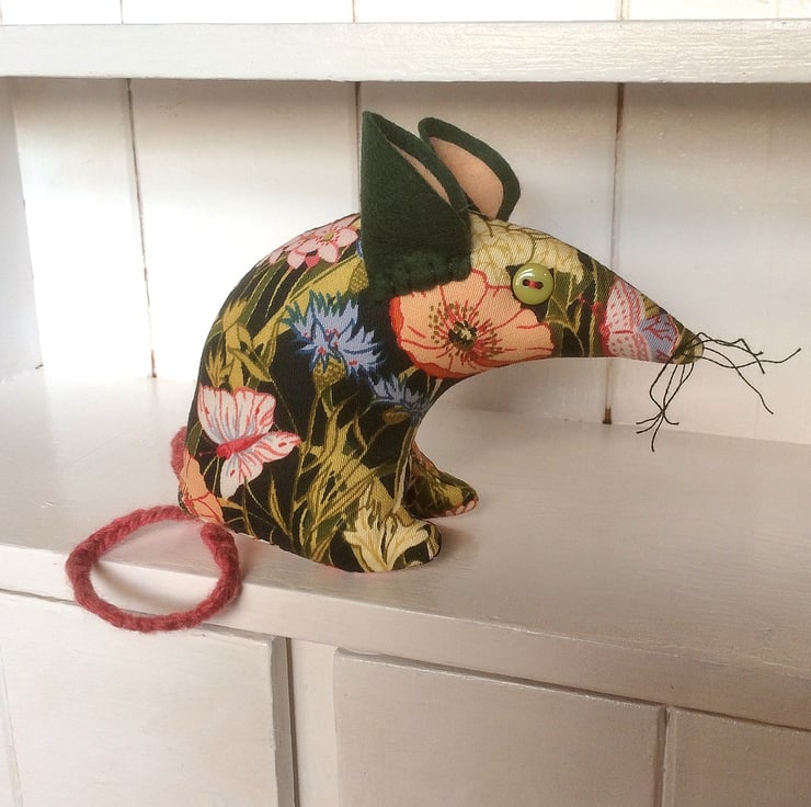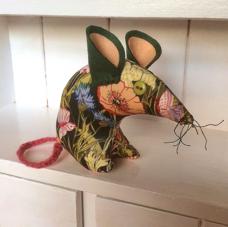 This mouse is stuffed with new 100% polyester filling which conform to BS5665, BS5852 and EN71 parts 1,2 & 3. The vintage fabric has been fully interfaced for additional durability.