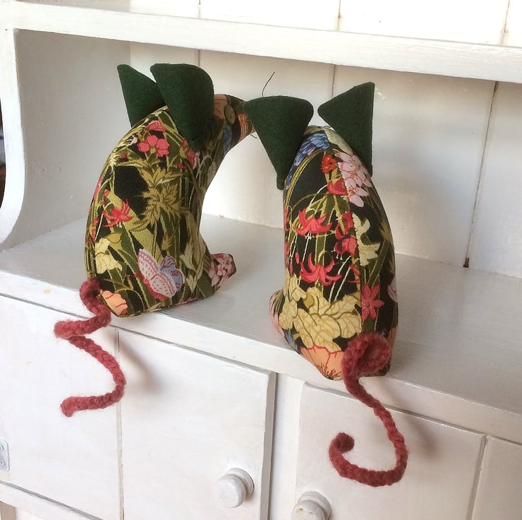 I LOVE making these mice ... I dip into my vintage fabric collection to craft these little cuties! This fabric is called 'Jolie Fleur' by Moygashel vintage fabric .