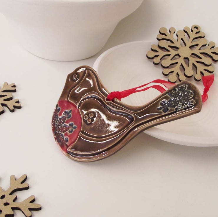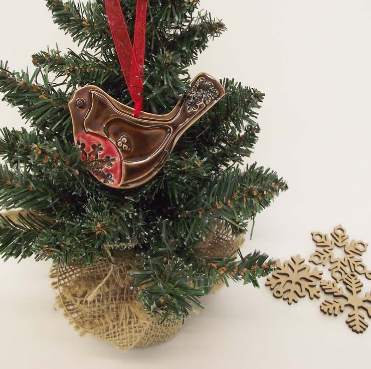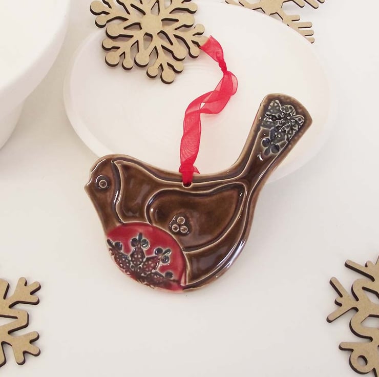 This cute little robin is made from white earthenware clay and decorated with pattern.