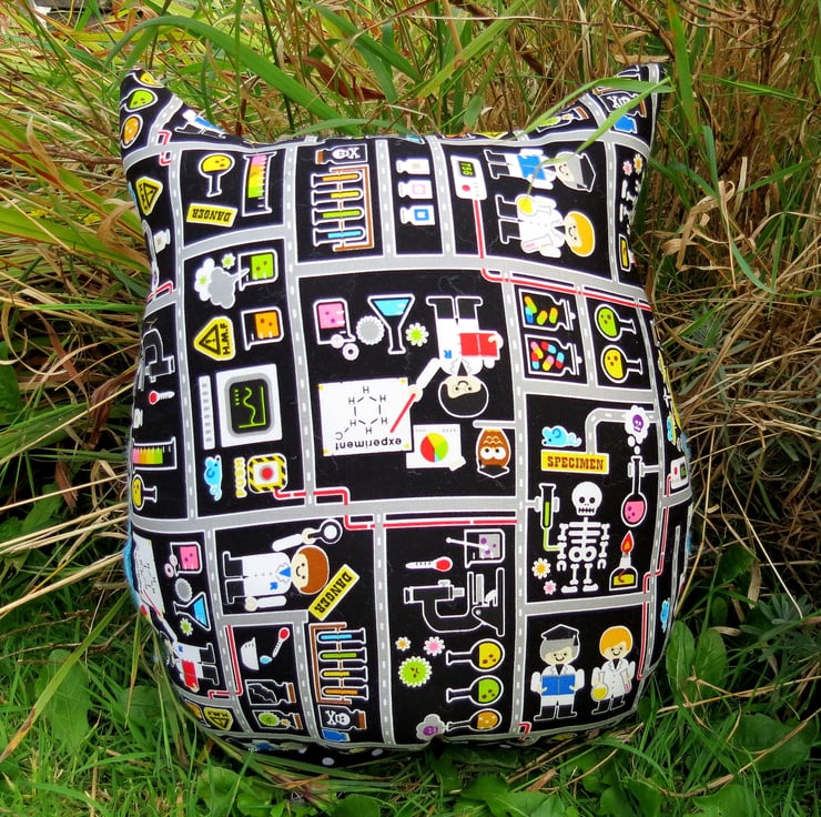 The cotton background fabric is a whimsical design by Kokka, and his gently layered wings are made from a textured boiled wool.