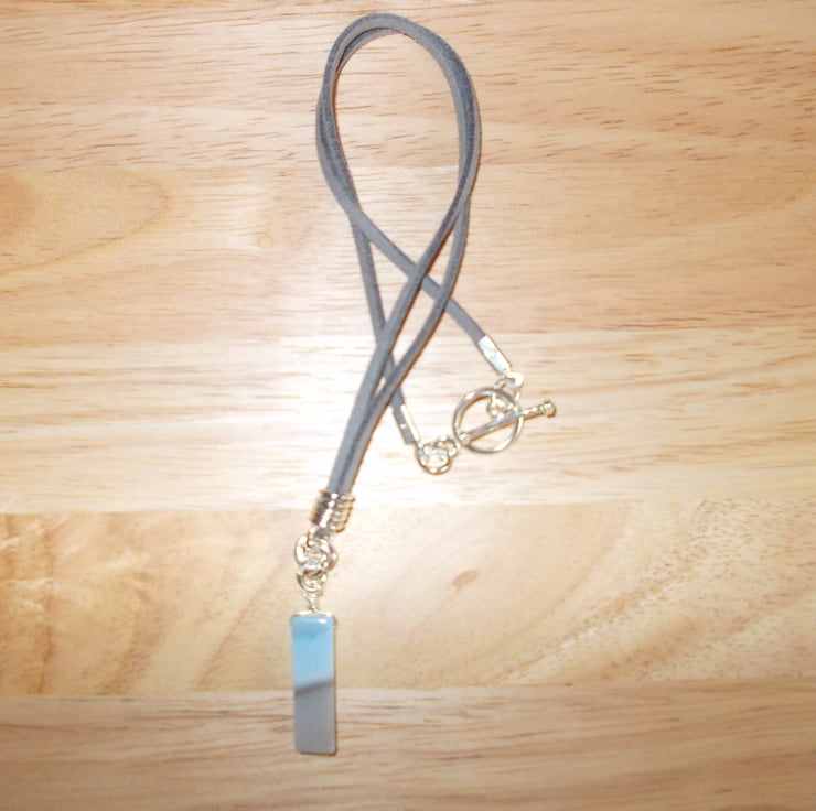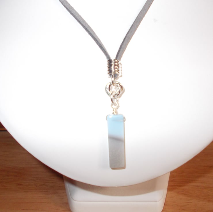 This necklace (on 18 inches of grey suedette) features a pendant of boulder opal in complimentary blue and grey tones.