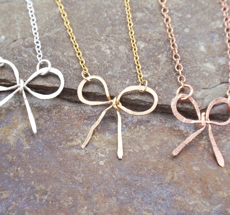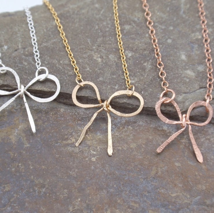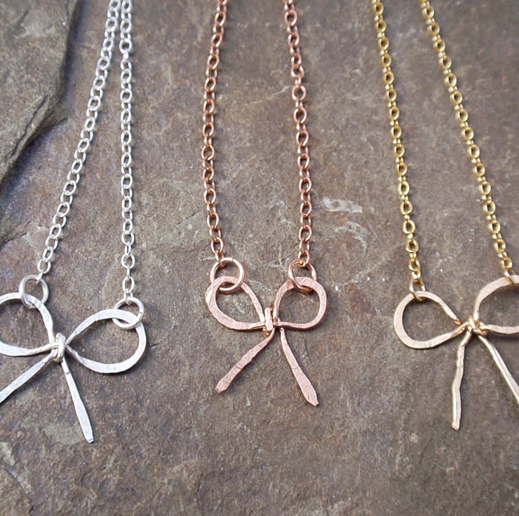 I have handmade the little bow charm with sterling silver wire and hammered for a rustic look.