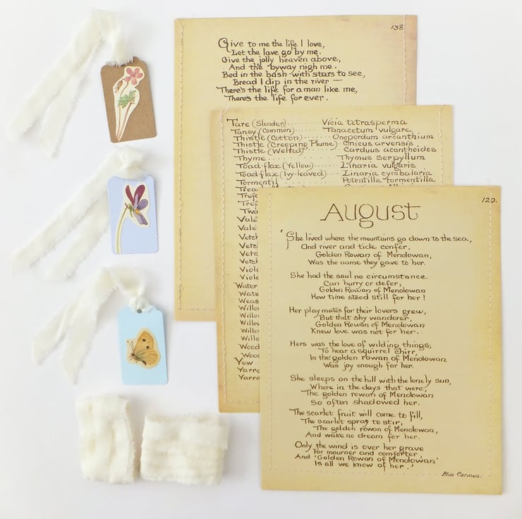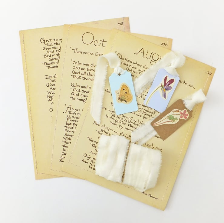 PLEASE NOTE that the bags and tags you receive may be different from those in the photos but will be equally lovely. Some may have only text and some may have some small pictures on them. Unfortunately we cannot generally take requests for a specific month or poem.