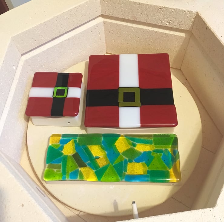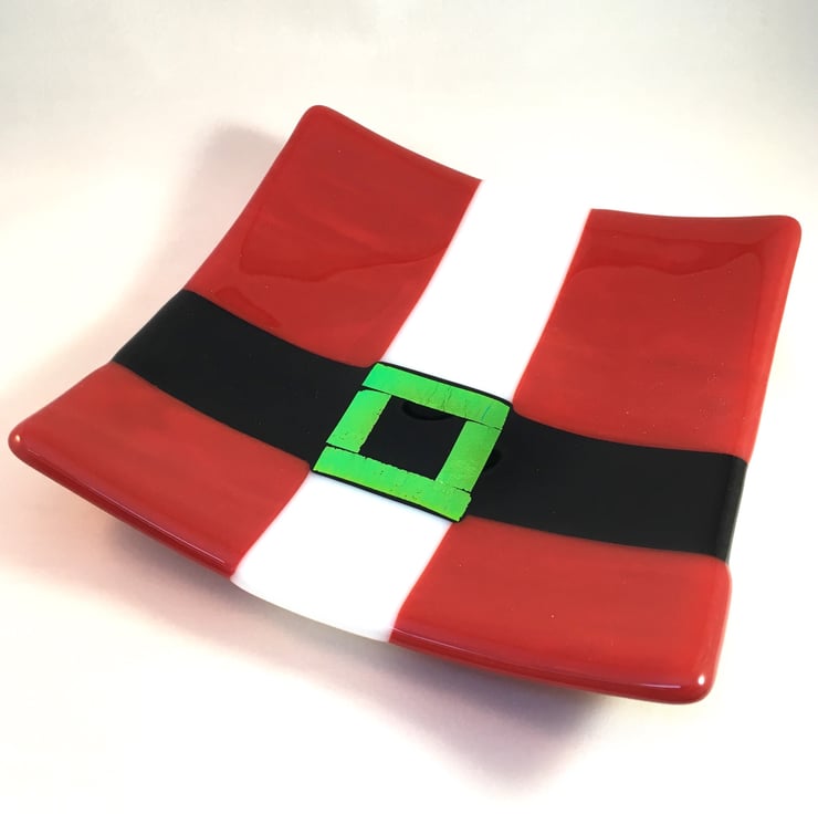 On Christmas Eve you don't leave your mince pies out for Santa on any old plate do you? This is a lovely decorative plate measuring just under 16cm squared. It's a perfect gift for your children, Godchildren, neices and nephews to help add an extra bit of fun to your Christmas traditions. The glass has been handcut before being fired to 800 degrees to fuse into one piece and then fired again to slump into shape.