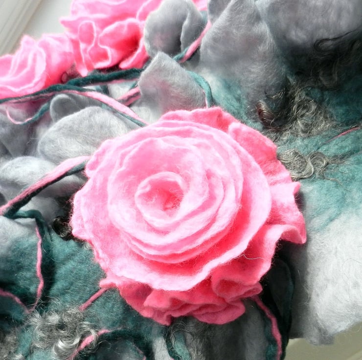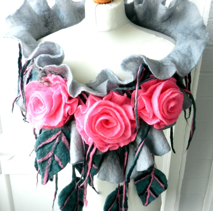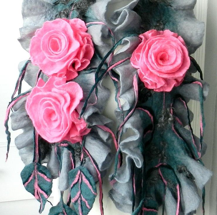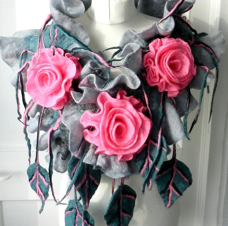 Hand Felted, Wool Jewelry felted SCARF -100% WOOL MERINO