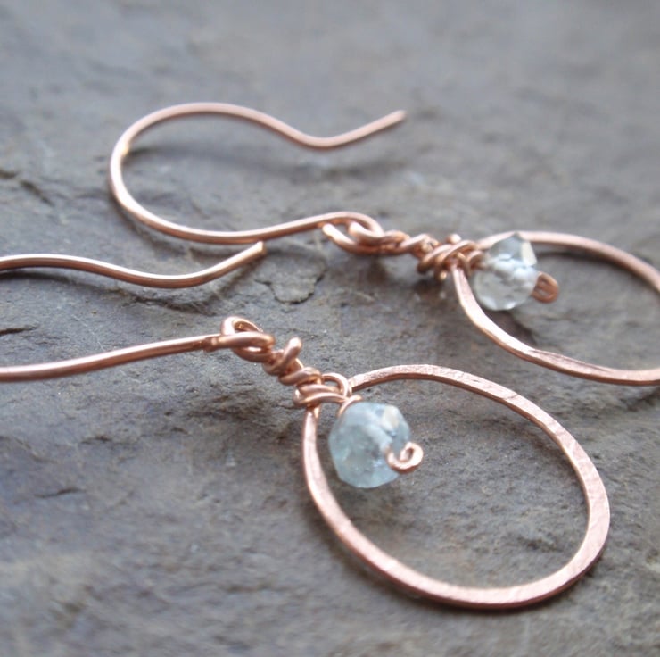 The pale blue of the aquamarine looks pretty contrasting with the soft pink of the rose gold