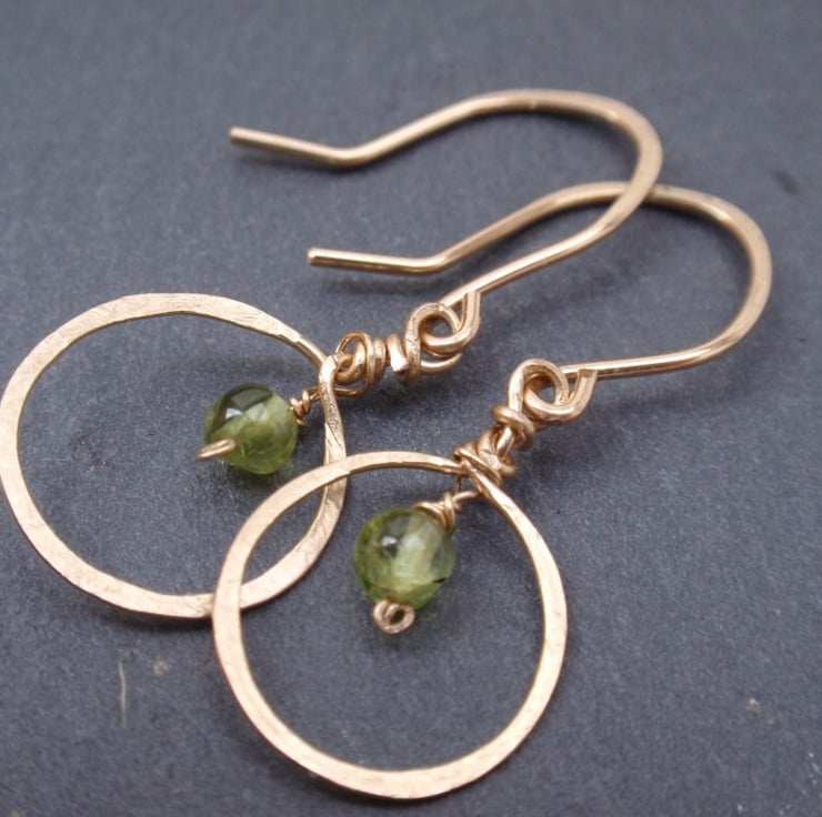 These simple hoop earrings have been handmade and hammered for a rustic look.