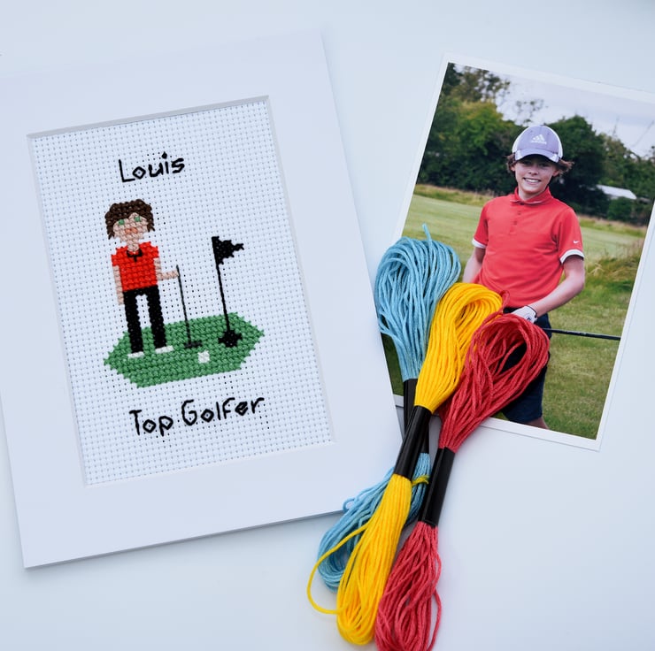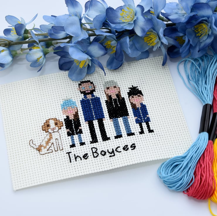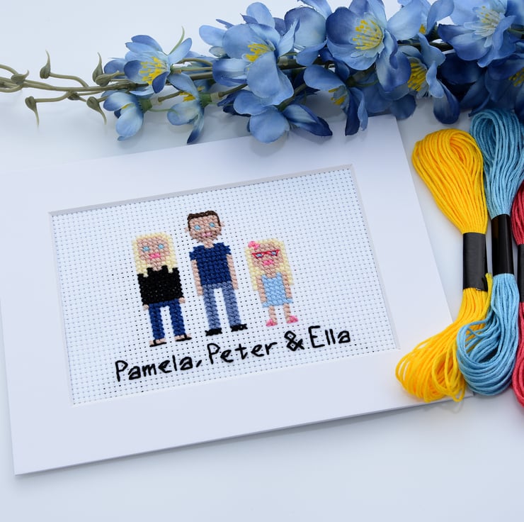Grace the walls of your home with a custom-made, cross stitch, pixel people portrait of you and your loved ones!
