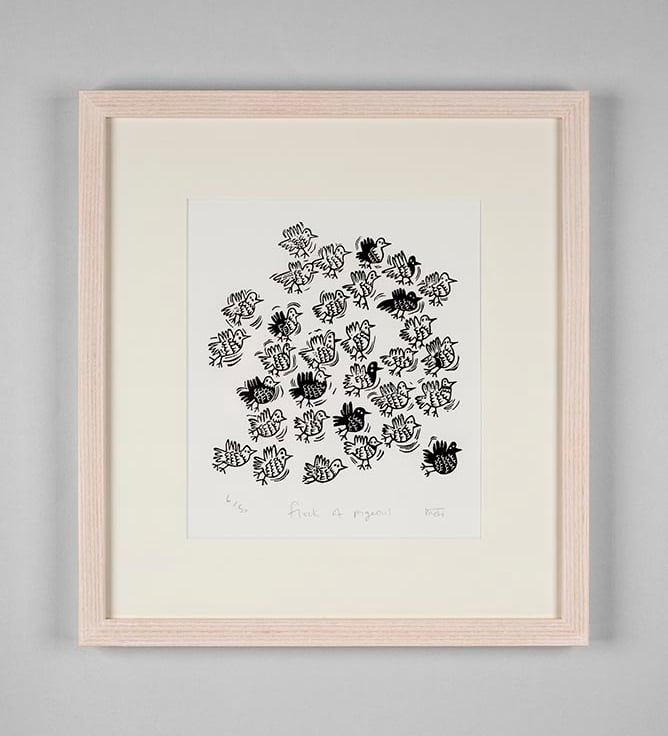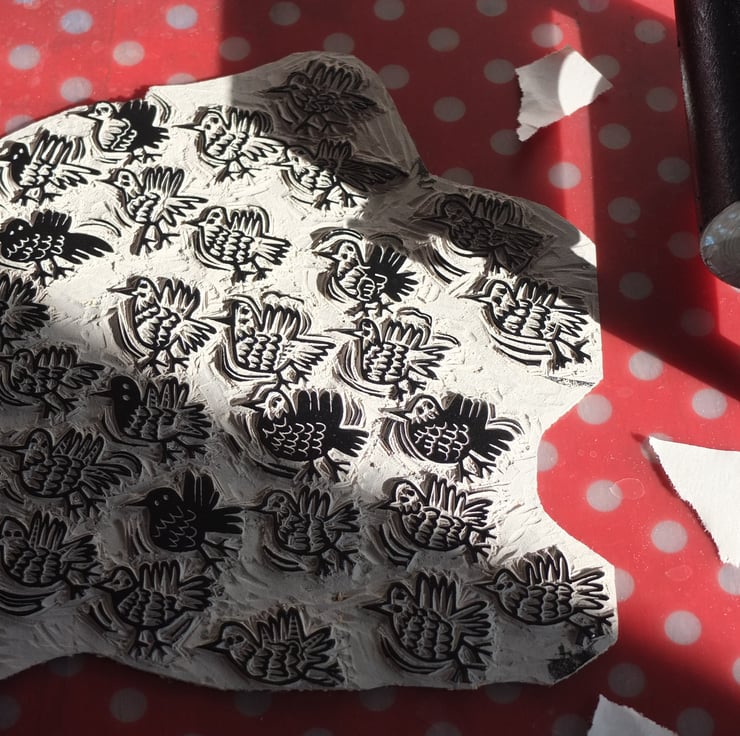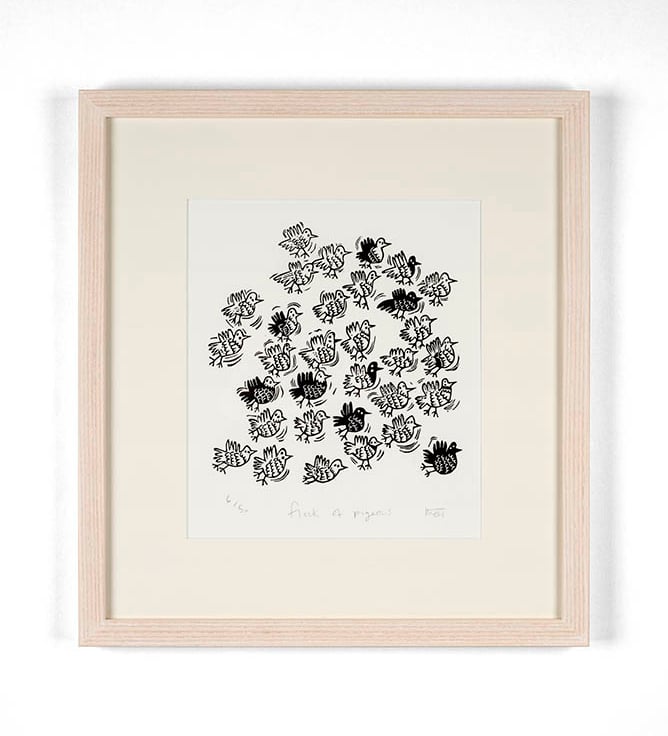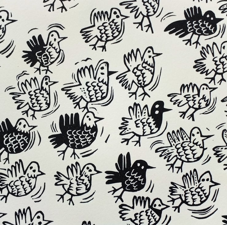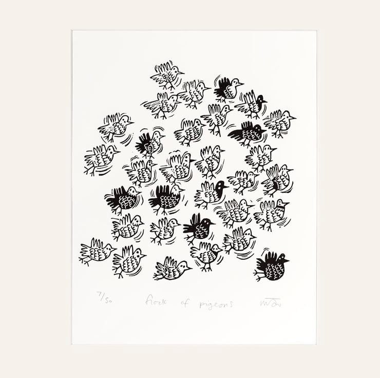 This is an original lino print and each pigeon has been hand carved - every beak, wing and pair of legs!