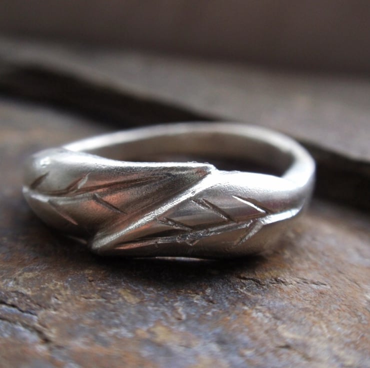 I have made this ring using the ancient lost wax casting method. This means carving the model from hard wax before it is cast in sterling silver, then it is finished with filing and polishing.