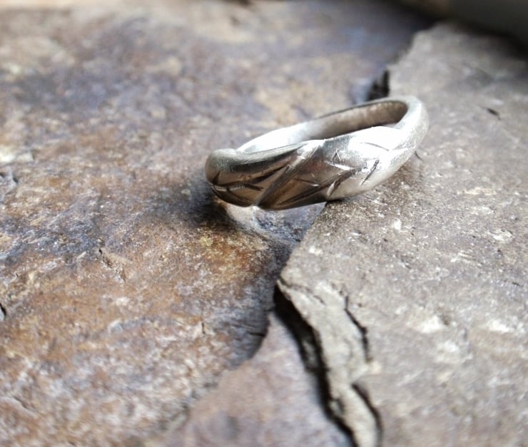 This silver leaf ring has a rustic feel with an elegant design.