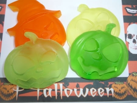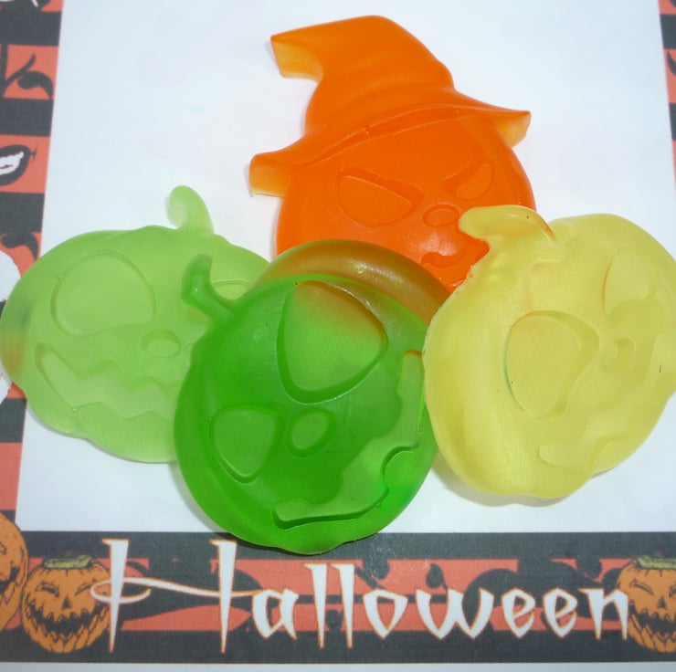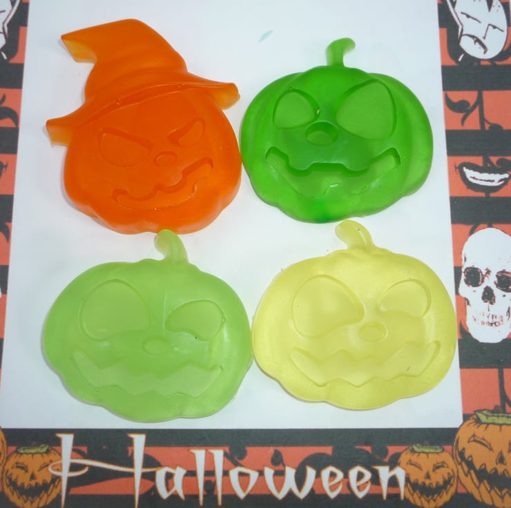 spooky pumpkin soaps, great novelty gift, for children and adults alike, they have a lovely winter spice fragrance, and come in assorted colours.