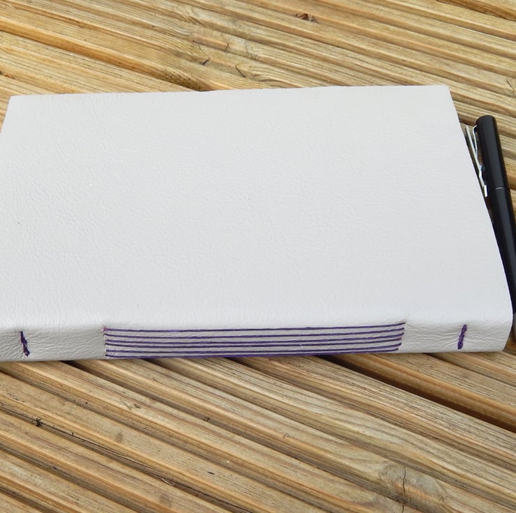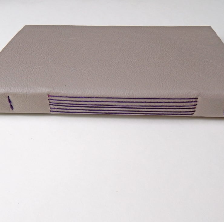 Hand bound with contrasting linen thread in rich purple.