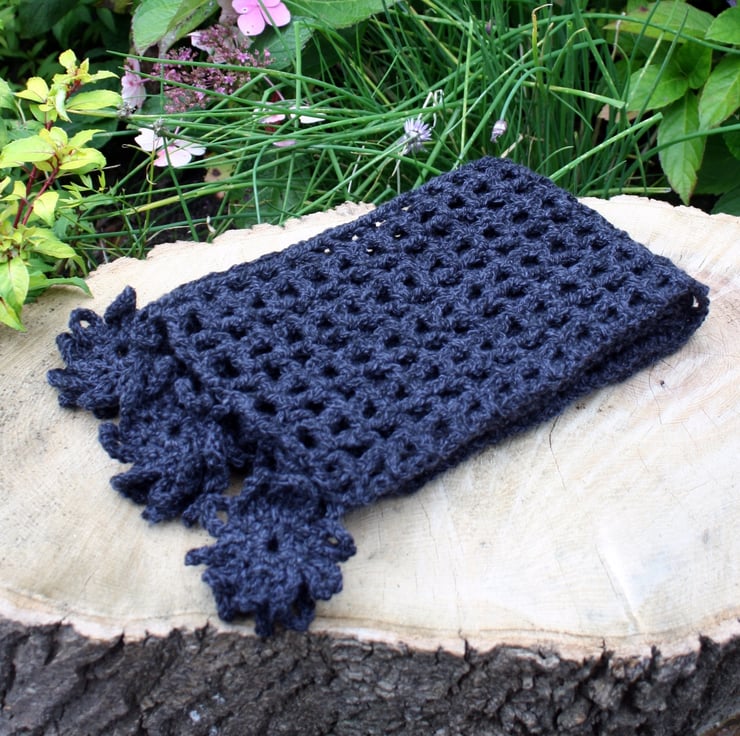 SALE - Scarf Dark Blue Crocheted