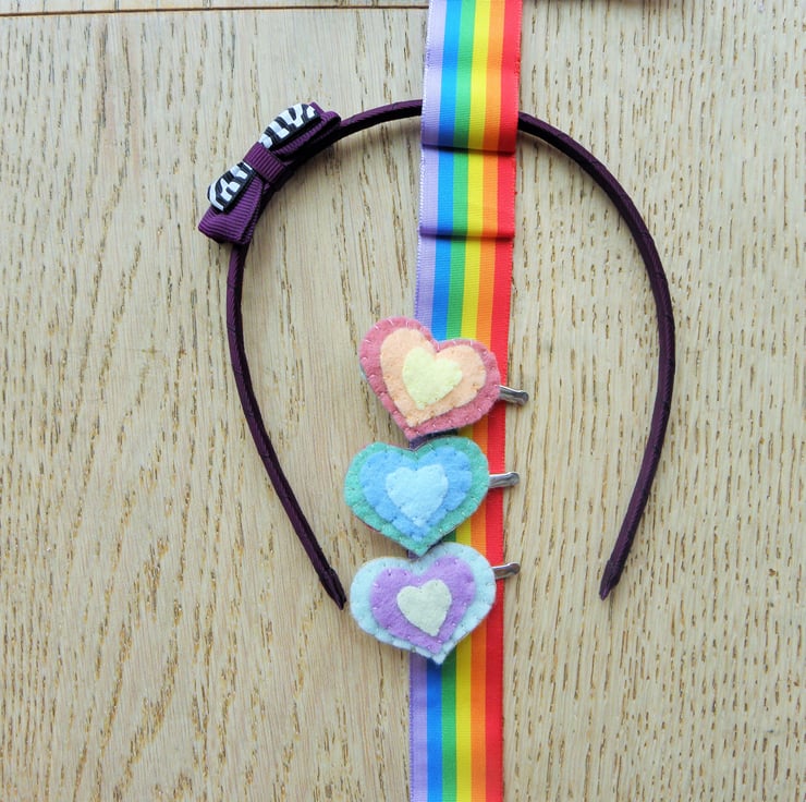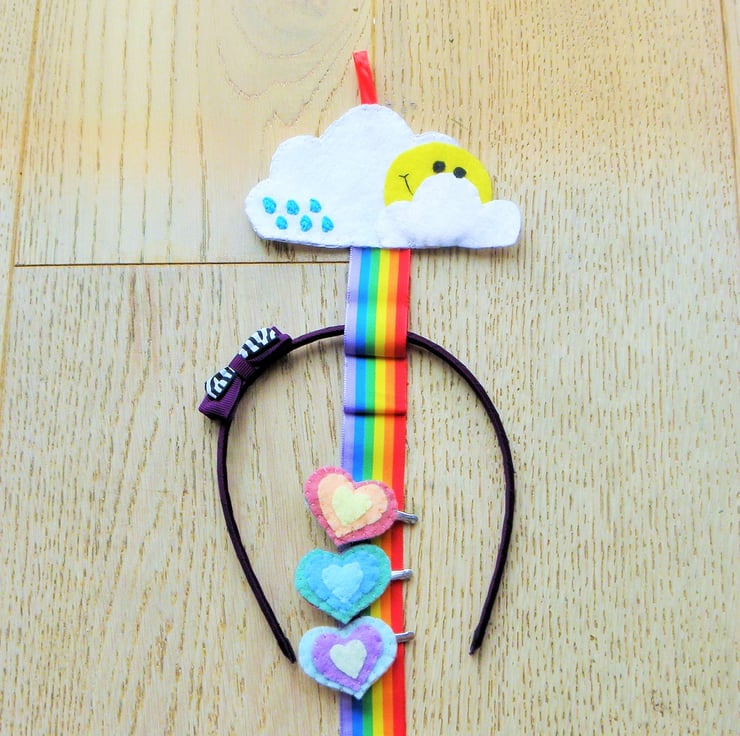 Spotted a spectacular rainbow the other night and I was inspired to make this cool hairclip holder. At the same time, I've been crafting some beautiful hairclips and wanted a way to display them and keep them tidy, and voila... this item was born!