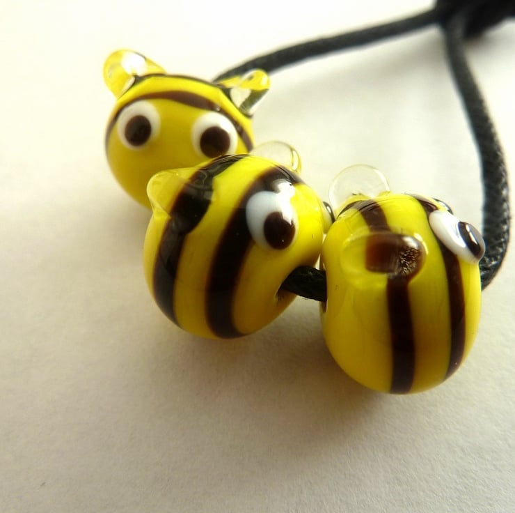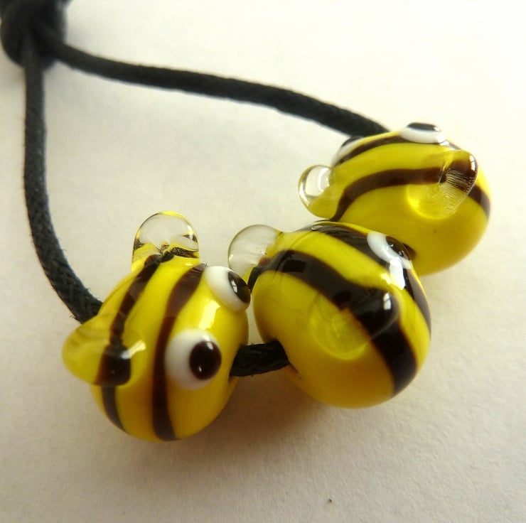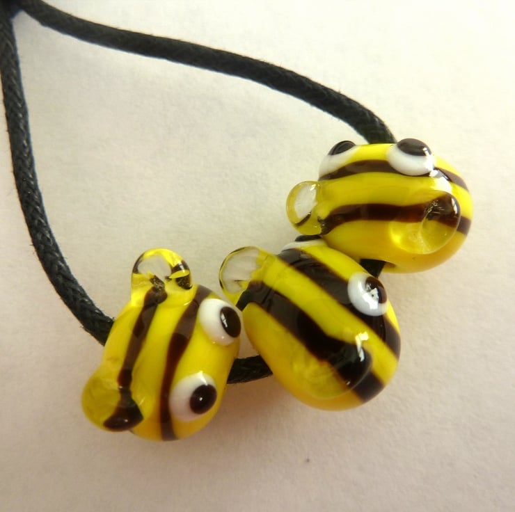 A set of 3 handmade lampwork glass beads which have made into bee's.