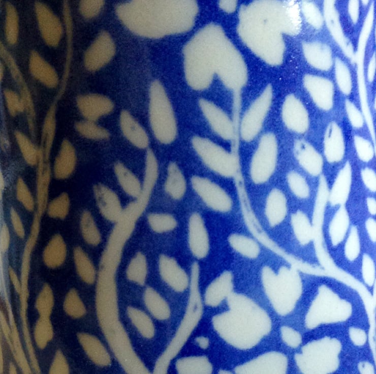 I love 'all over' pattern and wax resist ceramic decoration is one of my favourite methods of decoration. It is very simple and gives a softer and less hard edged look to ceramics.