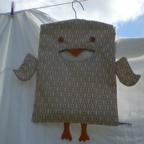 WonkyGiraffe Pegbags are a new twist on the traditional peg bag, whichever way they turn on the line; you can easily reach an opening, because there are two of them! Their two faces make them twice as user friendly, and may make you grin while you peg your clothes.