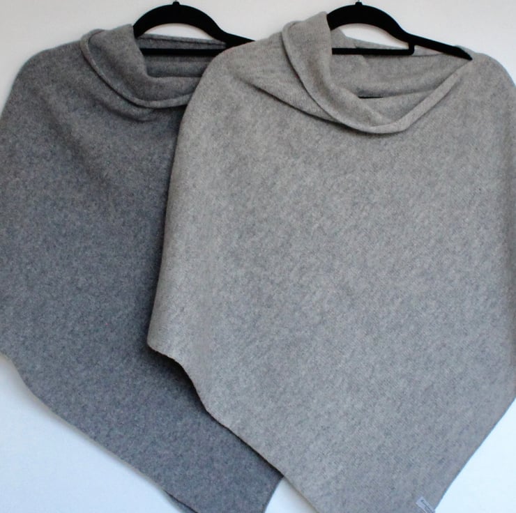 Luxurious British spun merino lambswool yarn the poncho is beautifully soft and cosy. Great for layering piece, it's the perfect choice for any outfit adding style and texture to your look. Perfect worn with smart trousers or jeans and statement jewellery or scarf for added interest. Ideal for a spring/summer walks or tucked up at home.