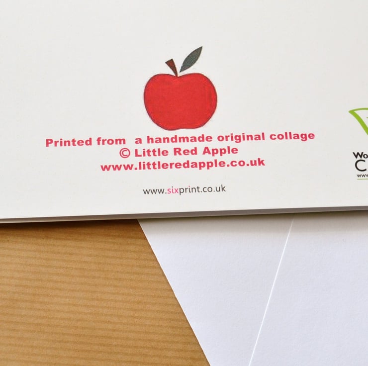 Printed from a handmade original collage onto eco-friendly card. It comes with a plain white envelope. Inside is blank for your own message.